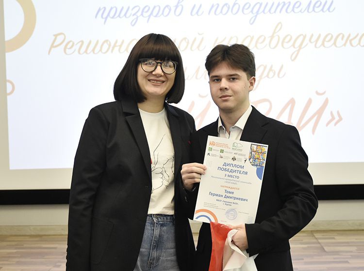 Наградили победителей директор Гуманитарного института КГУ, кандидат исторических наук Денис Маслюженко и председатель Совета Курганского регионального отделения Движение Первых Мария Колчеданцева.